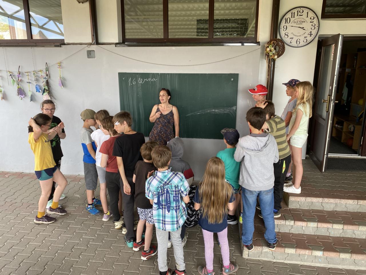 Dětský den plný her, který byl zakončený přespáváním ve škole.